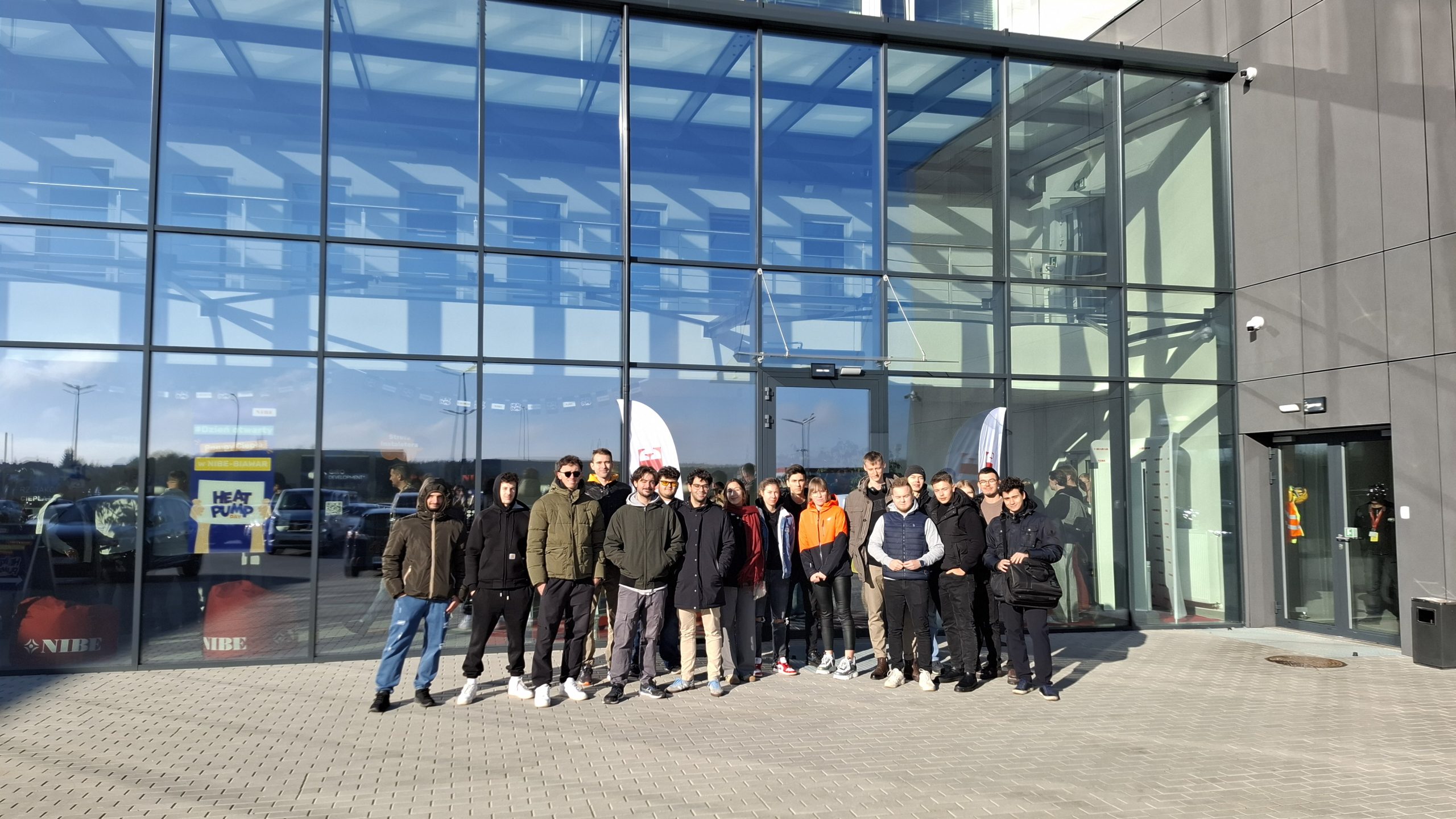 dniu 21.10.2025 studenci kierunku Inżynieria Środowiska, Energetyka Cieplna, w tym przedstawiciele SKN Ciepłownik z opiekunem dr inż. Anną Werner-Juszczuk, oraz studenci Erasmus+ z WBiNŚ wzięli udział w Dniu Otwartym Pomp Ciepła w fabryce NIBE-BIAWAR przy ul. Kalicińskiego w Białymstoku. Podczas wizyty studenci uczestniczyli w panelach edukacyjnych m.in. „ Jak prawidłowo zainstalować pompę ciepła – kluczowe wskazówki”,„ Instalacje hybrydowe. Jak połączyć pompę ciepła z istniejącym źródłem ciepła i PV?”. Podczas prelekcji połączonych z dyskusją można było zapoznać się z zasadami doboru pomp ciepła, wytycznymi montażu pomp ciepła oraz możliwościami wykorzystania pomp ciepła w istniejących systemach grzewczych z kotłami gazowymi, olejowymi i na biomasę. Podczas zwiedzania zakładu produkcyjnego NIBE-BIAWAR studenci zapoznali się z etapami produkcji emaliowanych zasobników c.w.u. i zbiorników buforowych, a także central i jednostek wewnętrznych do powietrznych pomp ciepła NIBE.