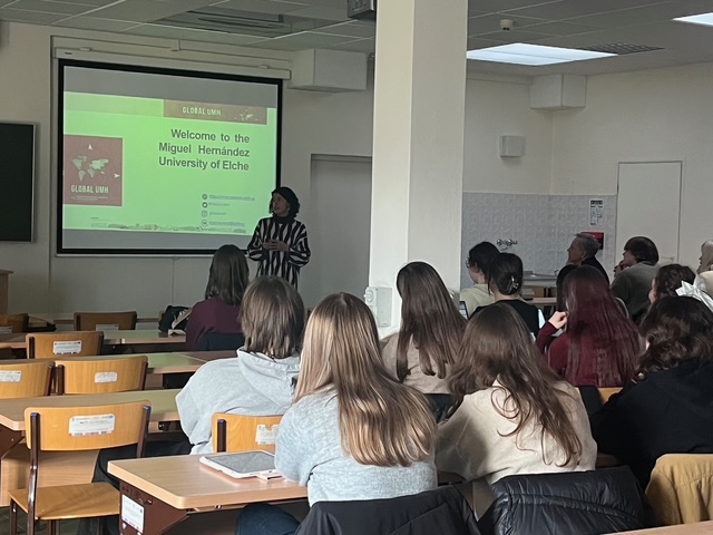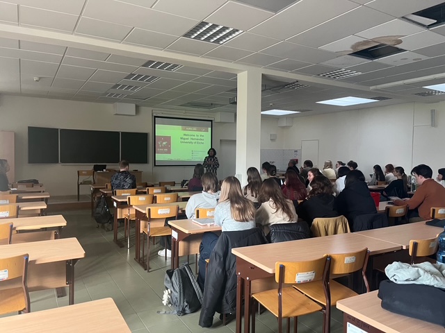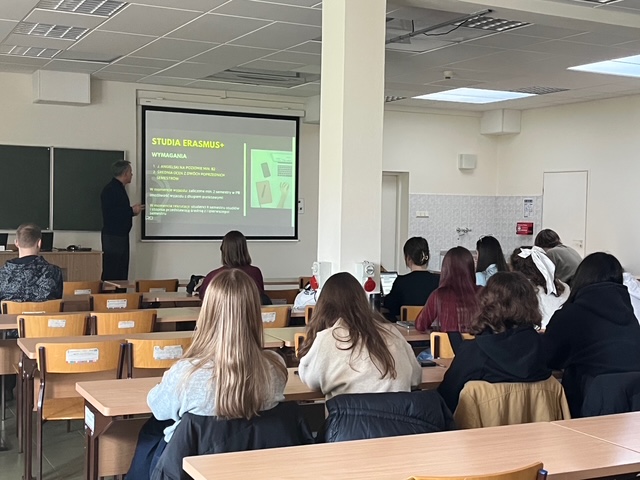 Na wstępnie dr Piotr Rynkowski zaprezentował możliwości jakie mają studenci którzy chcą skorzystać z programu Erasmus i którzy zechcą spędzić semestr na nauce w Universidad Miguel Hernández w Elche.