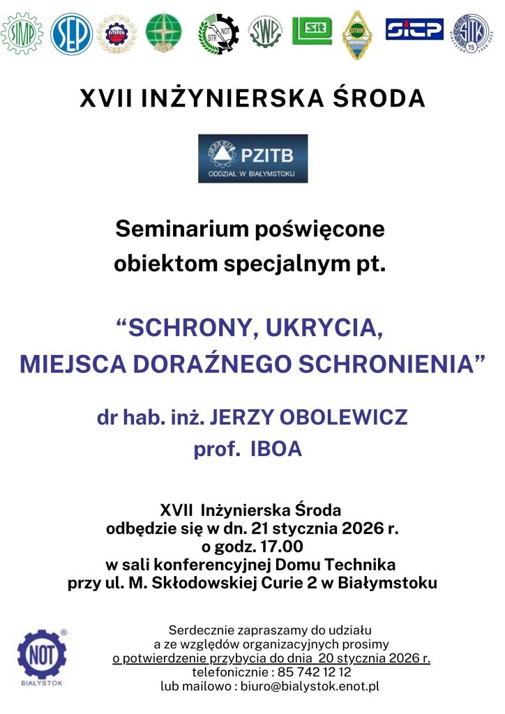 19-01-2026W imieniu organizatorów serdecznie zapraszamy wszystkich pracowników, studentów i zainteresowanych do udziału w pierwszej w tym roku Inżynierskiej Środzie. Spotkanie odbędzie 21 stycznia 2026 r. w sali konferencyjnej Domu Technika (Białystok, ul. M. Skłodowskiej Curie 2) o godzinie 17:00.