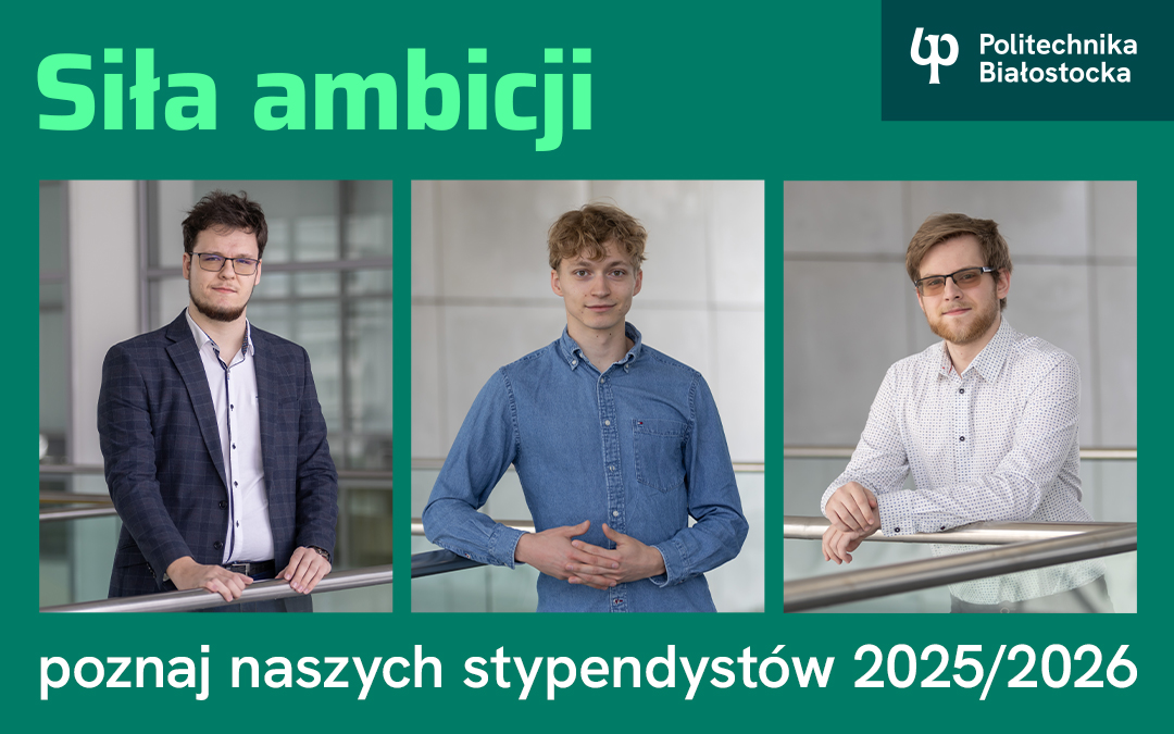Trójka studentów Politechniki Białostockiej otrzymała stypendium Ministra Nauki i Szkolnictwa Wyższego za znaczące osiągnięcia na rok akademicki 2025/2026. Zostali docenieni za swoje osiągnięcia naukowe, w tym artykuły publikowane w czasopismach z wykazu MNiSW, wystąpienia na konferencjach, udział w projektach i dorobek patentowy.