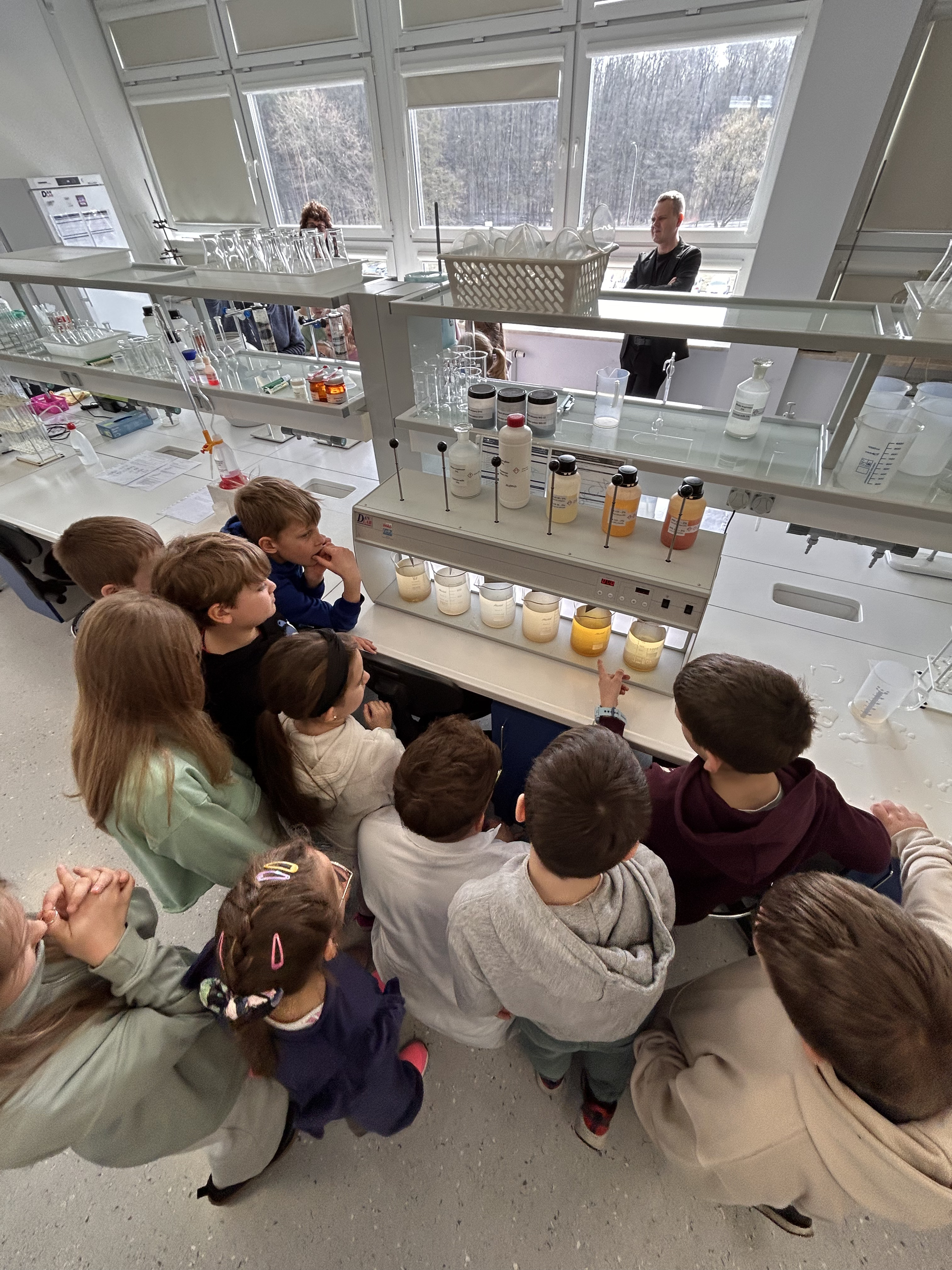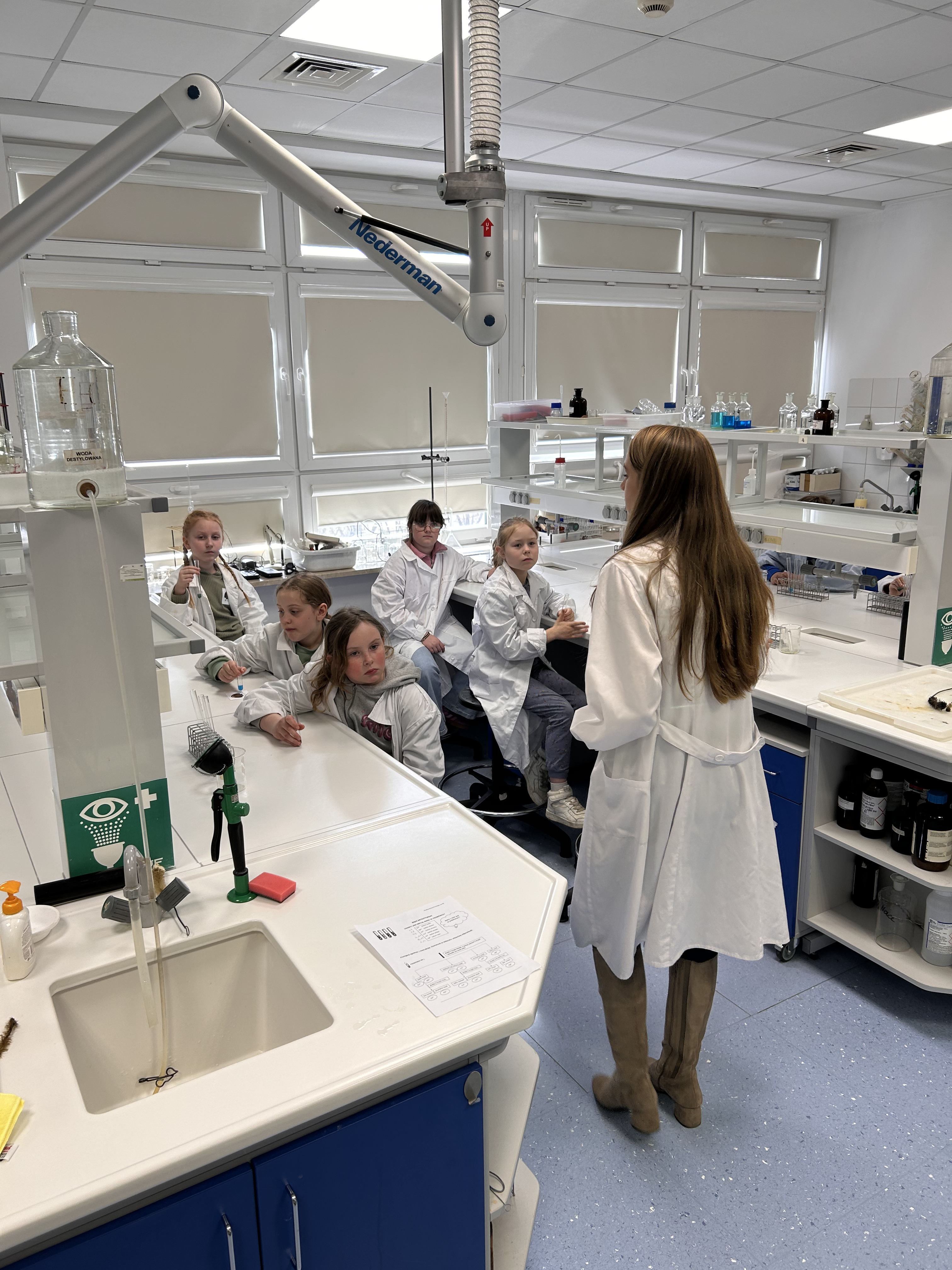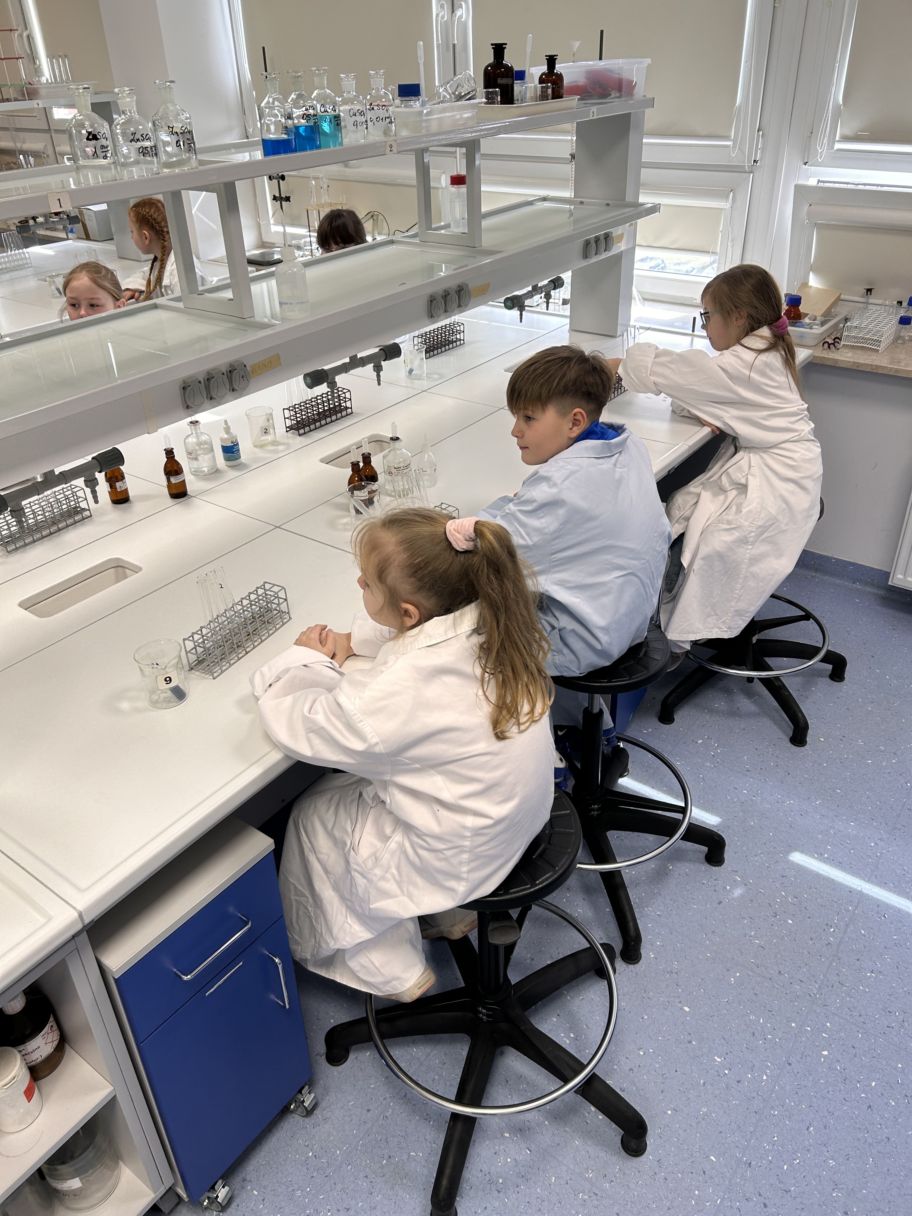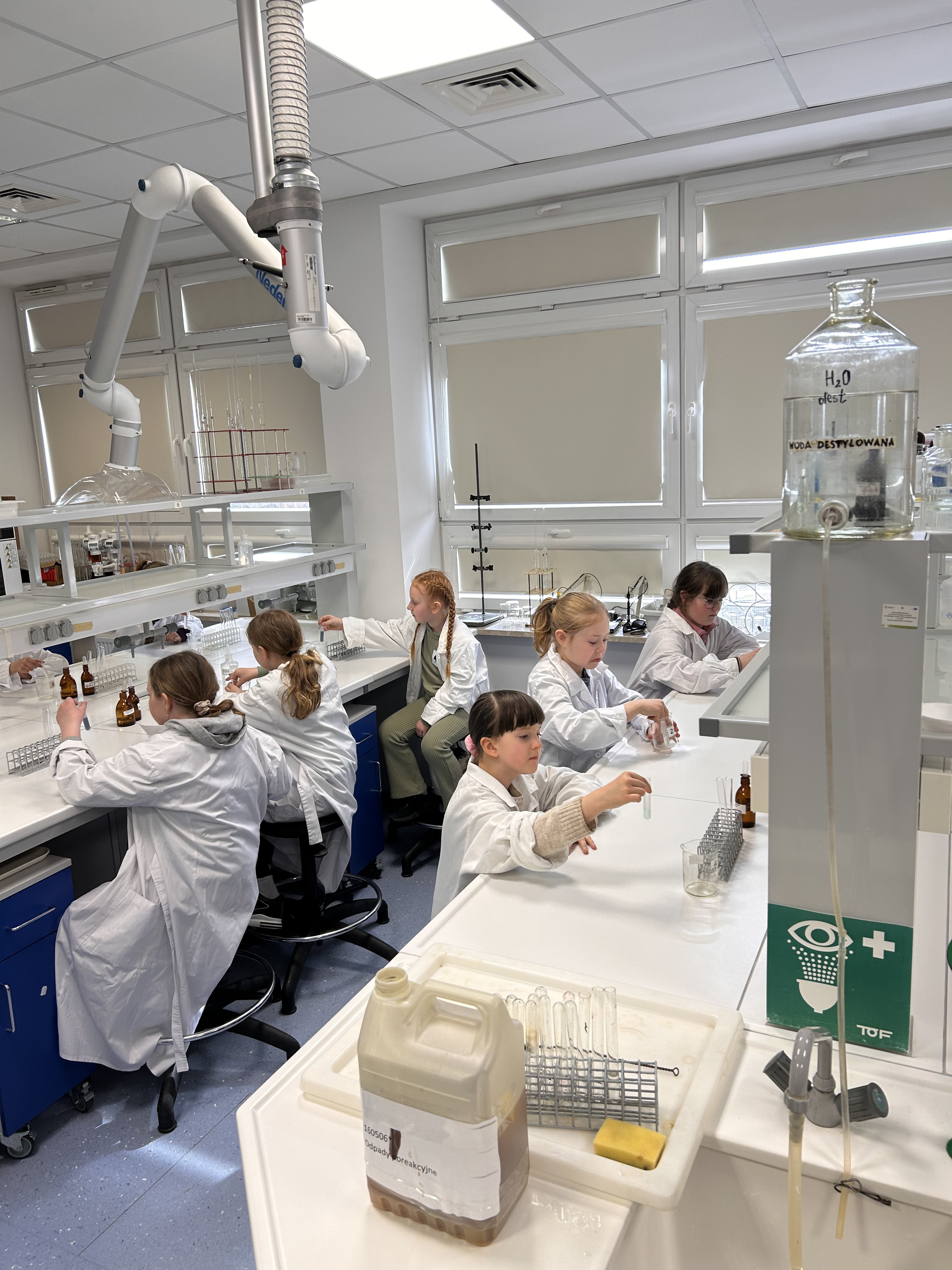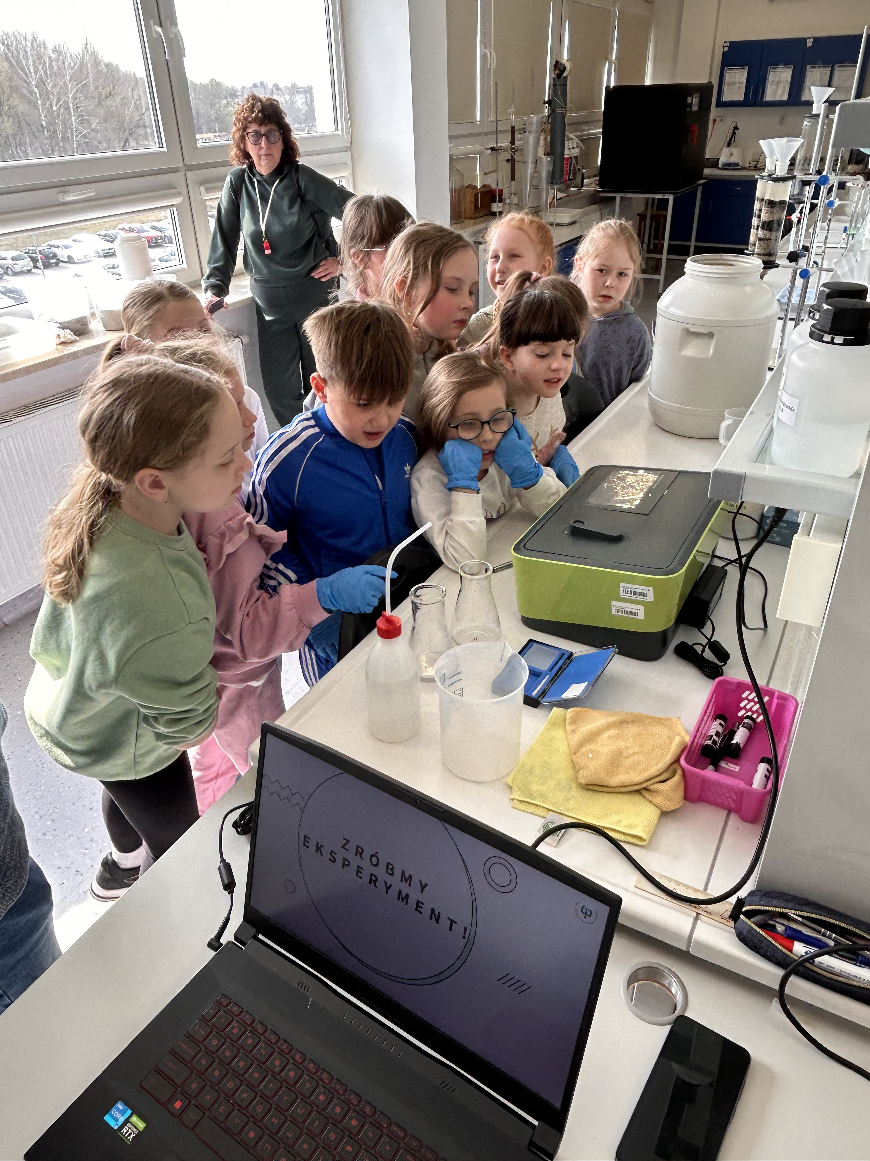 Z kolei zespół z Katedry Chemii, Biologii i Biotechnologii zaprosił uczniów do „Laboratorium tajemniczych jonów”, gdzie – wcielając się w rolę chemików-detektywów – odkrywali, jak rozpoznawać różne kationy na podstawie reakcji chemicznych i obserwowanych zmian. W praktyce sprawdzali, dlaczego jedne roztwory zmieniają barwę, inne tworzą osady, a jeszcze inne pienią się lub wydzielają gaz.