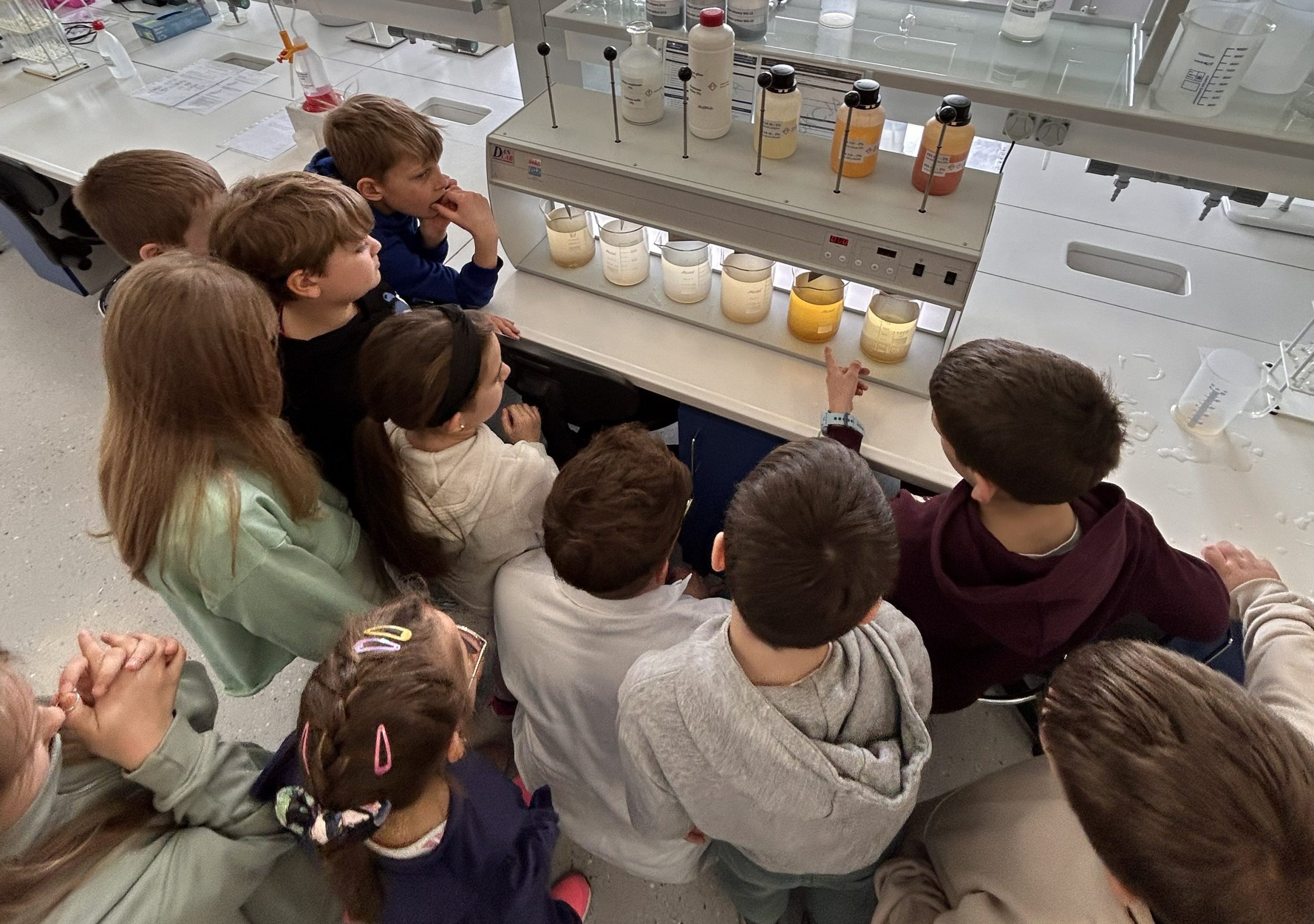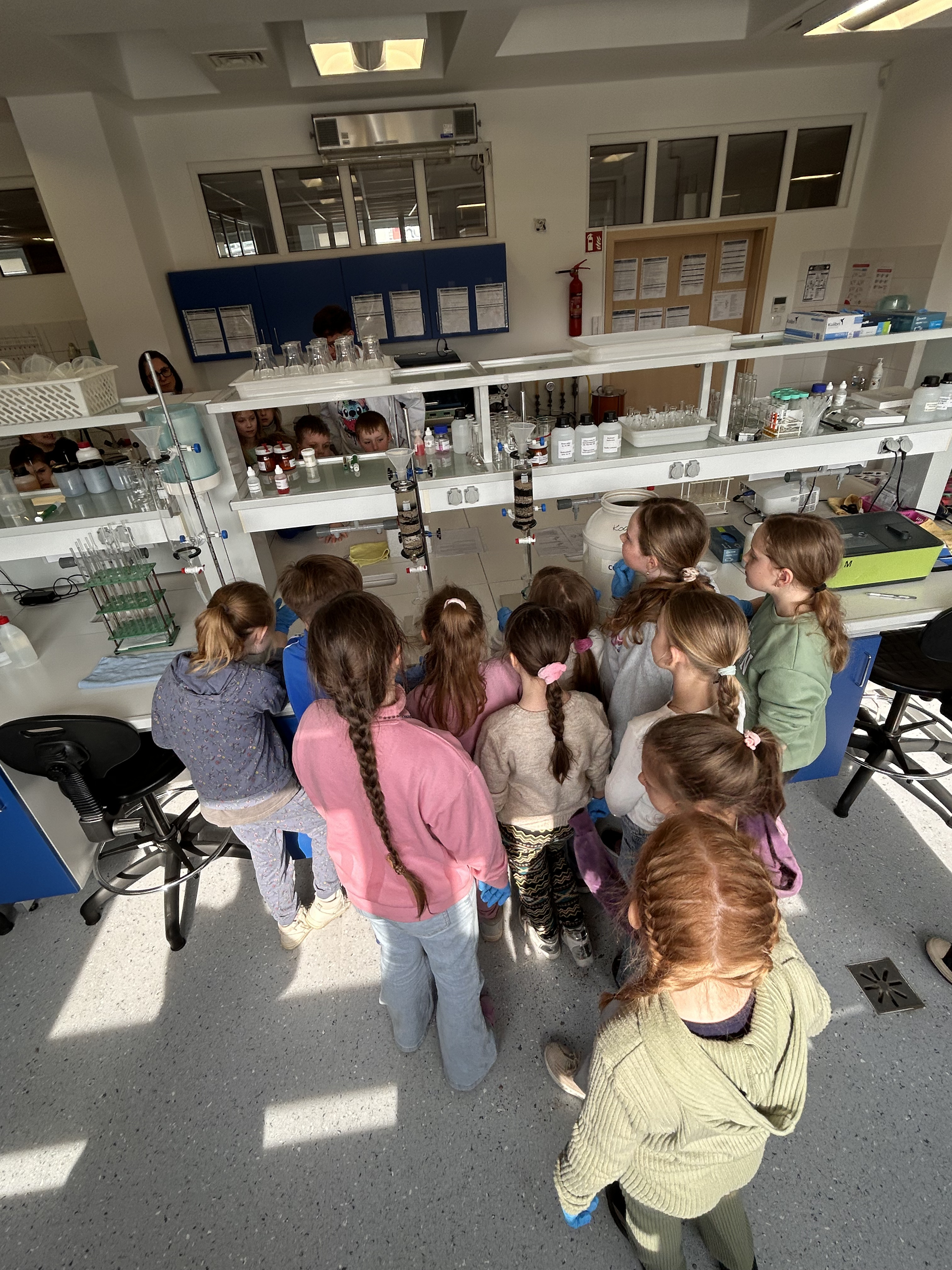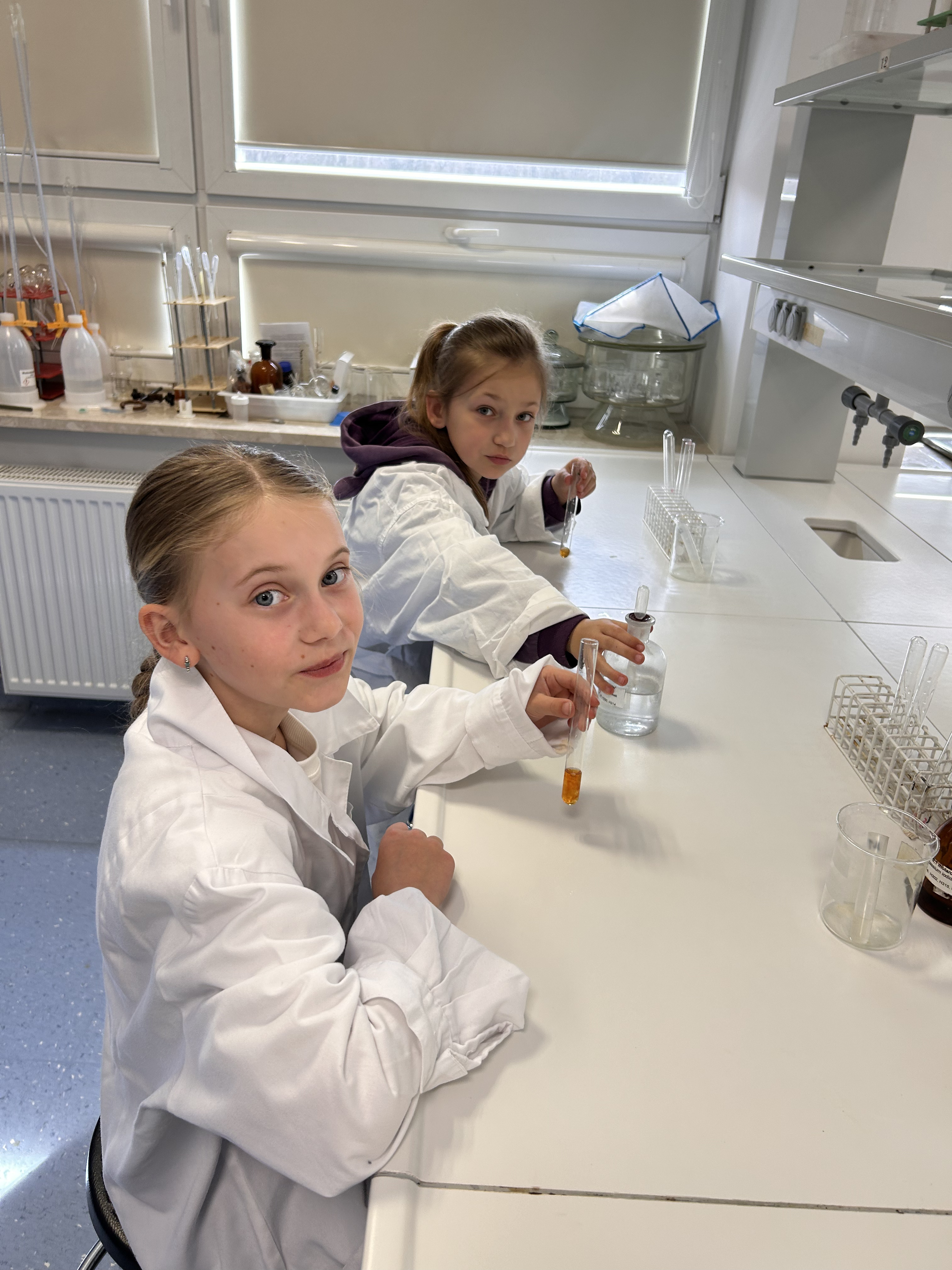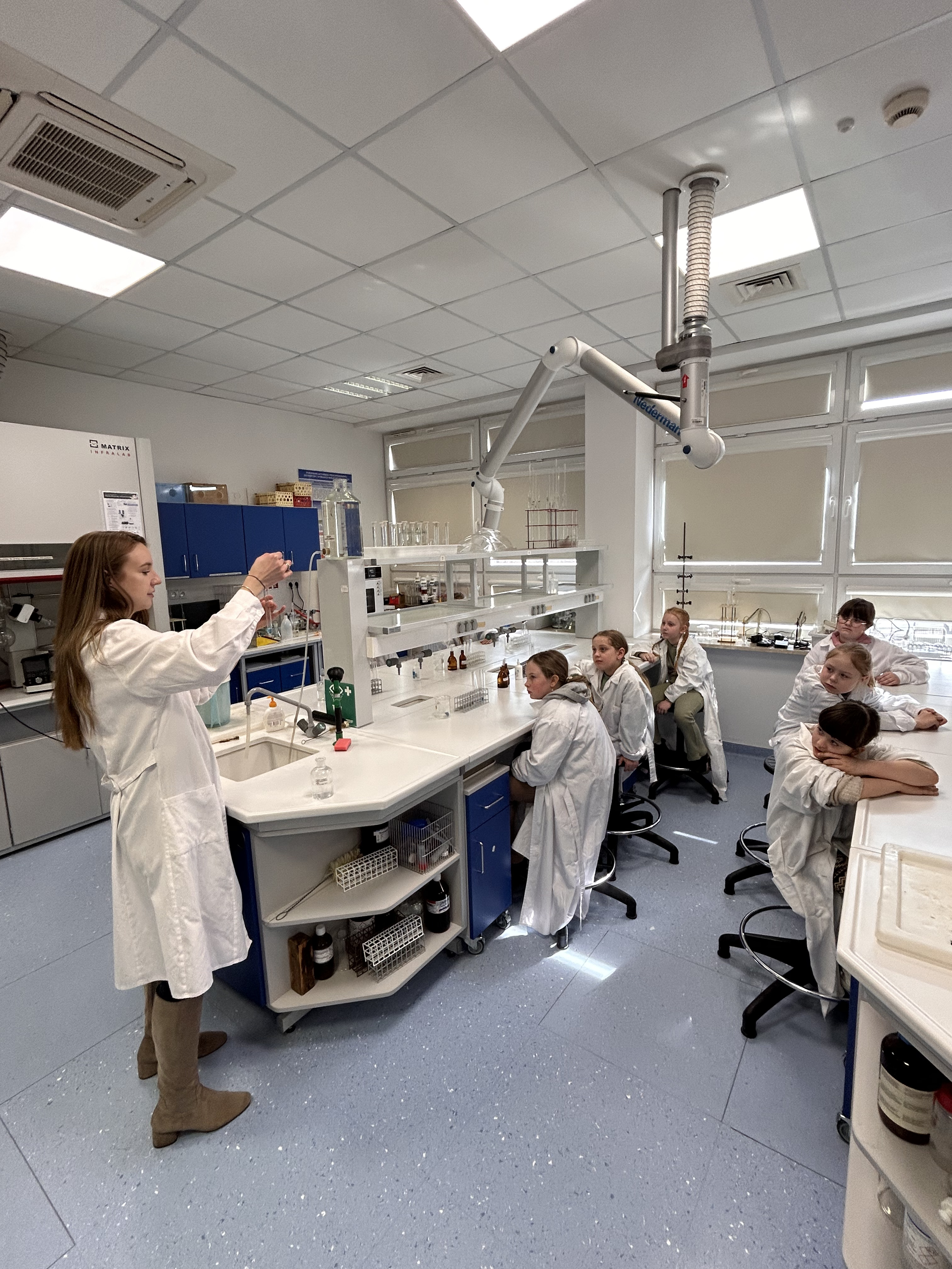 Z kolei zespół z Katedry Chemii, Biologii i Biotechnologii zaprosił uczniów do „Laboratorium tajemniczych jonów”, gdzie – wcielając się w rolę chemików-detektywów – odkrywali, jak rozpoznawać różne kationy na podstawie reakcji chemicznych i obserwowanych zmian. W praktyce sprawdzali, dlaczego jedne roztwory zmieniają barwę, inne tworzą osady, a jeszcze inne pienią się lub wydzielają gaz.
