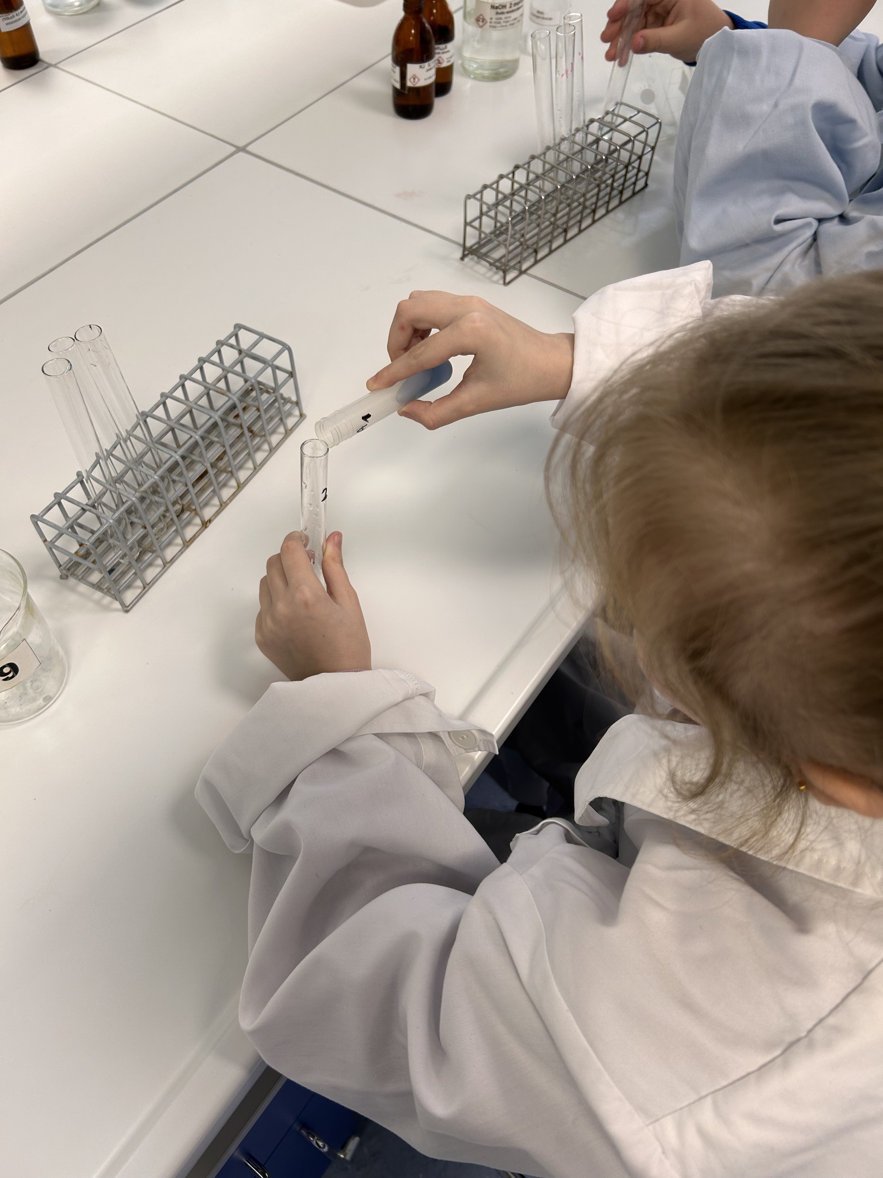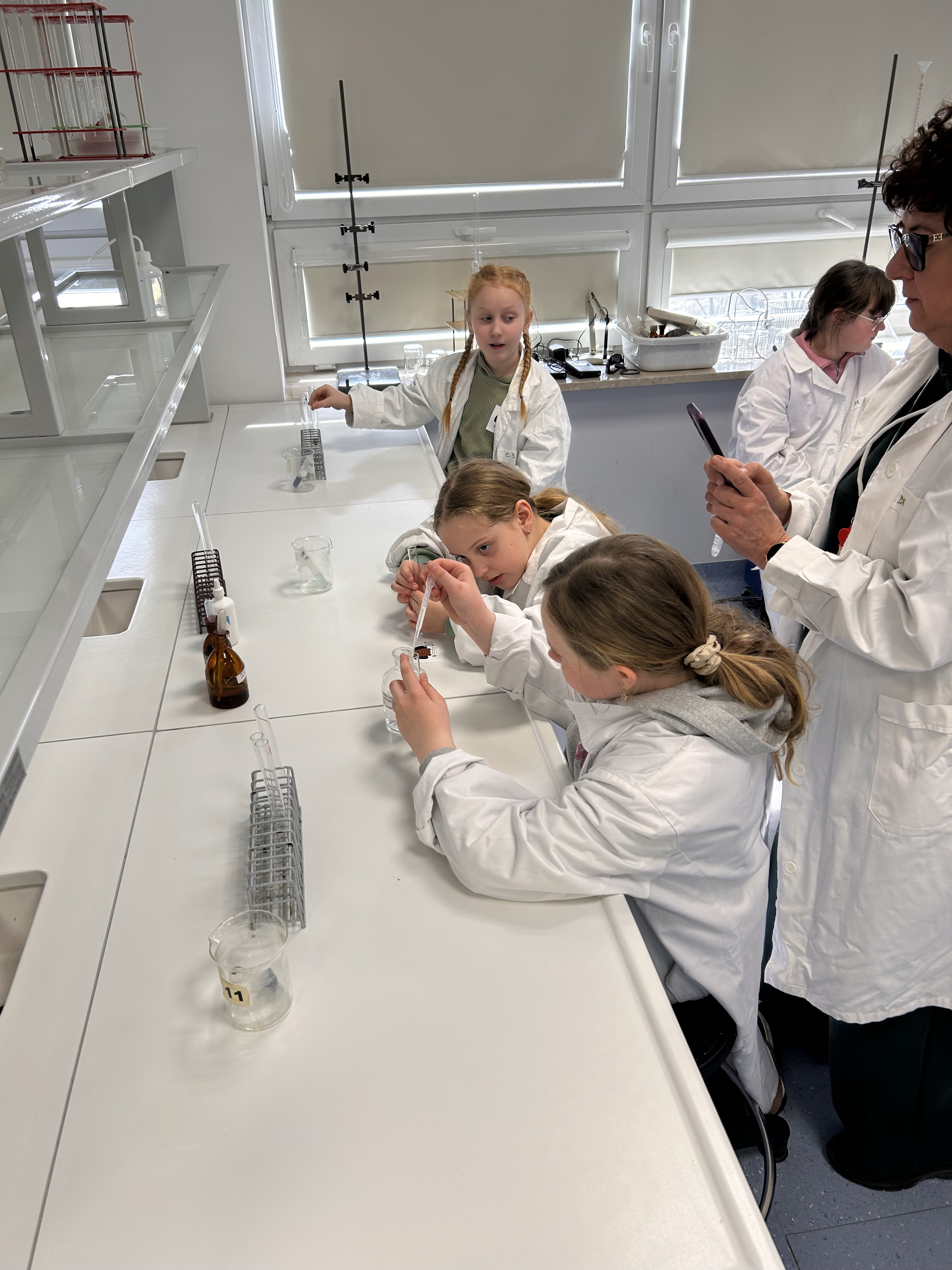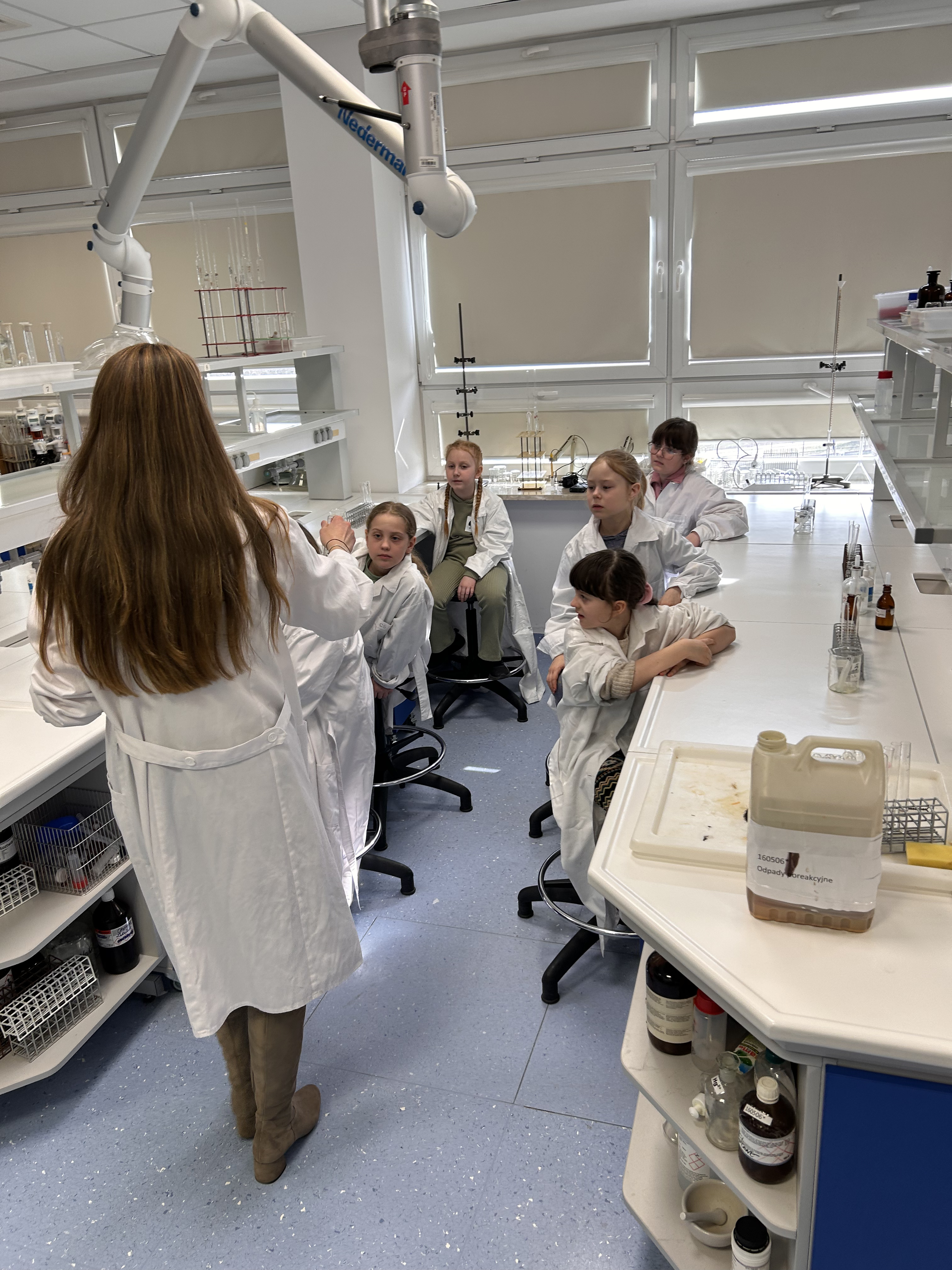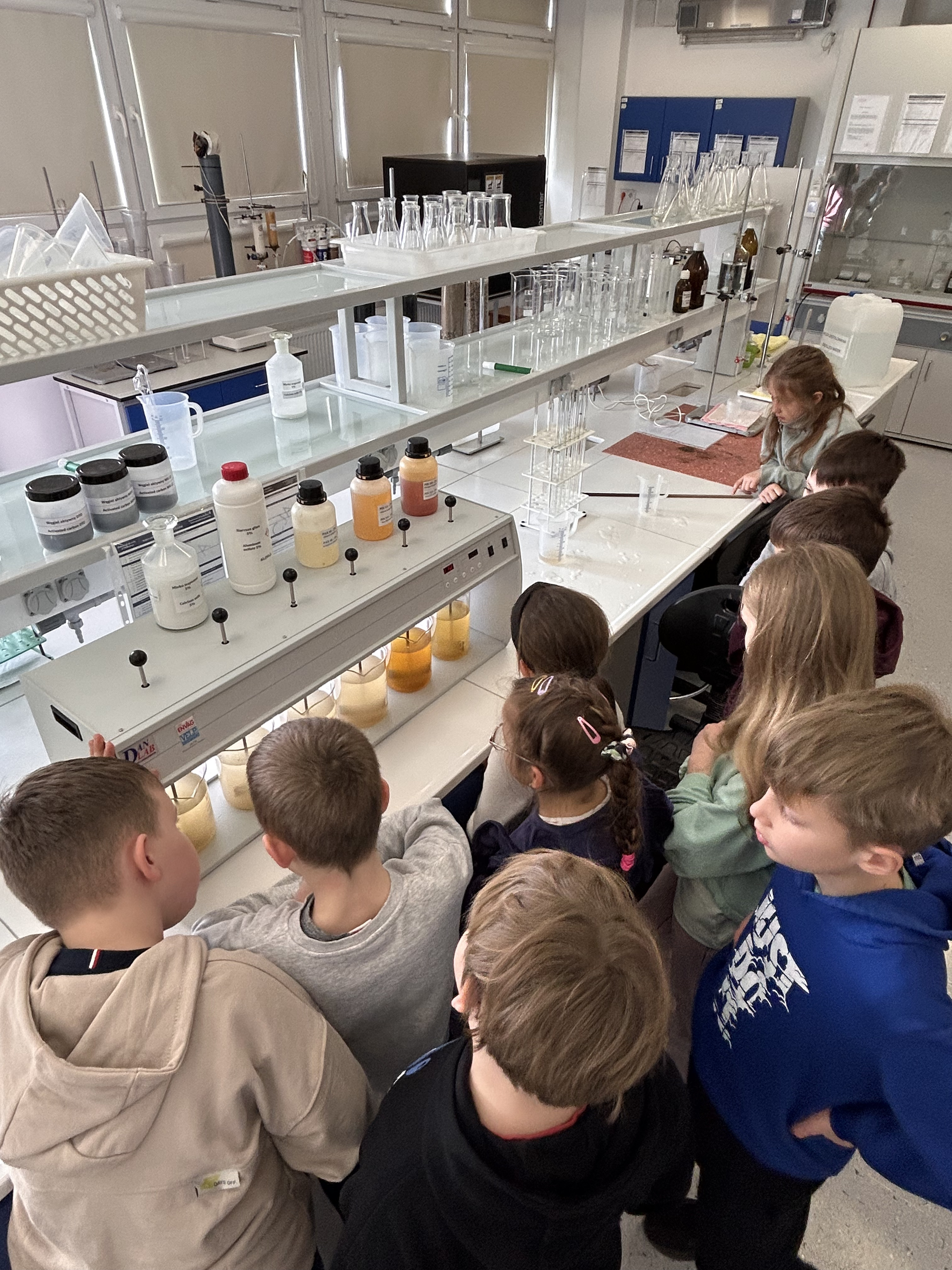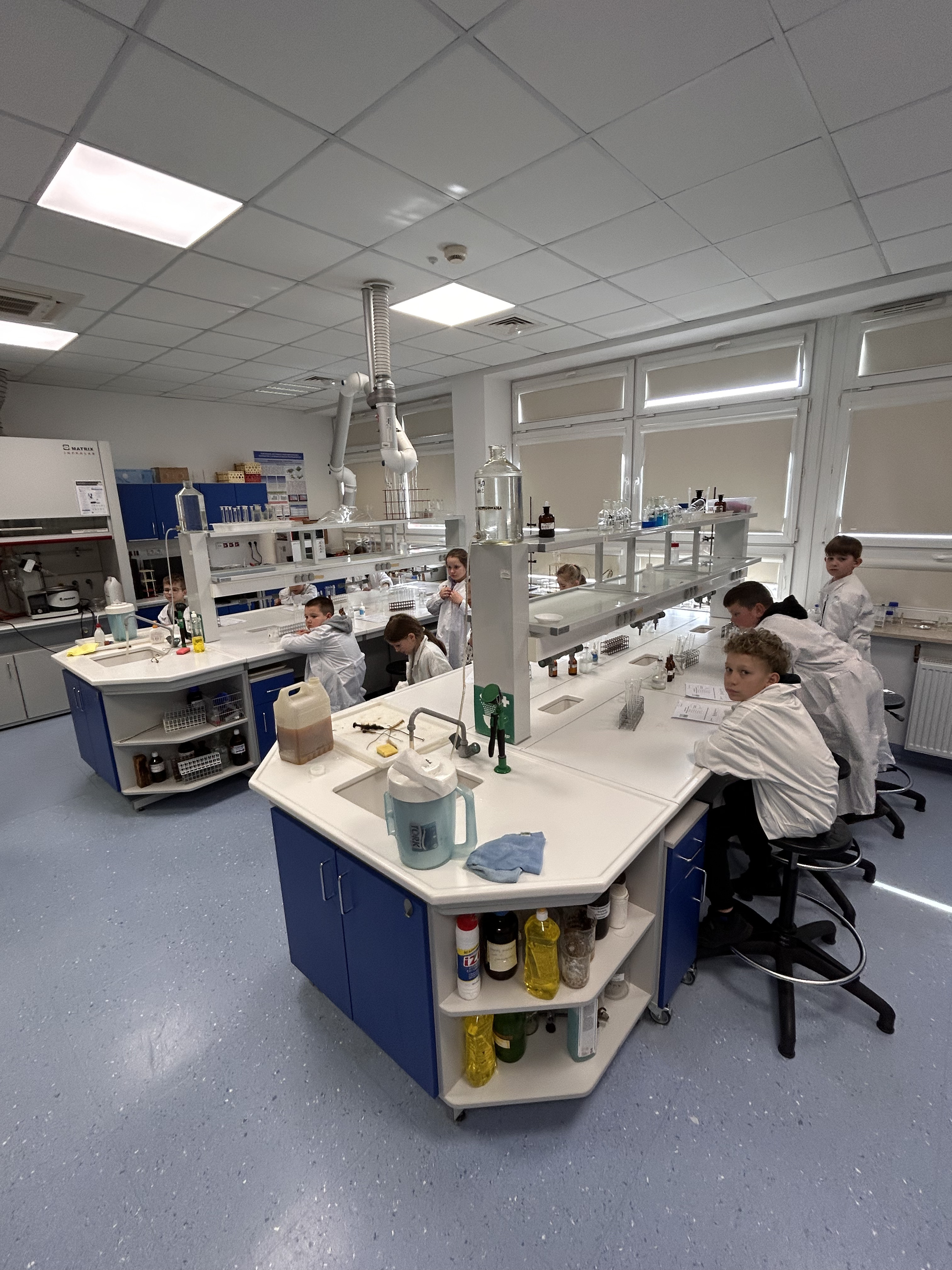 Z kolei zespół z Katedry Chemii, Biologii i Biotechnologii zaprosił uczniów do „Laboratorium tajemniczych jonów”, gdzie – wcielając się w rolę chemików-detektywów – odkrywali, jak rozpoznawać różne kationy na podstawie reakcji chemicznych i obserwowanych zmian. W praktyce sprawdzali, dlaczego jedne roztwory zmieniają barwę, inne tworzą osady, a jeszcze inne pienią się lub wydzielają gaz.