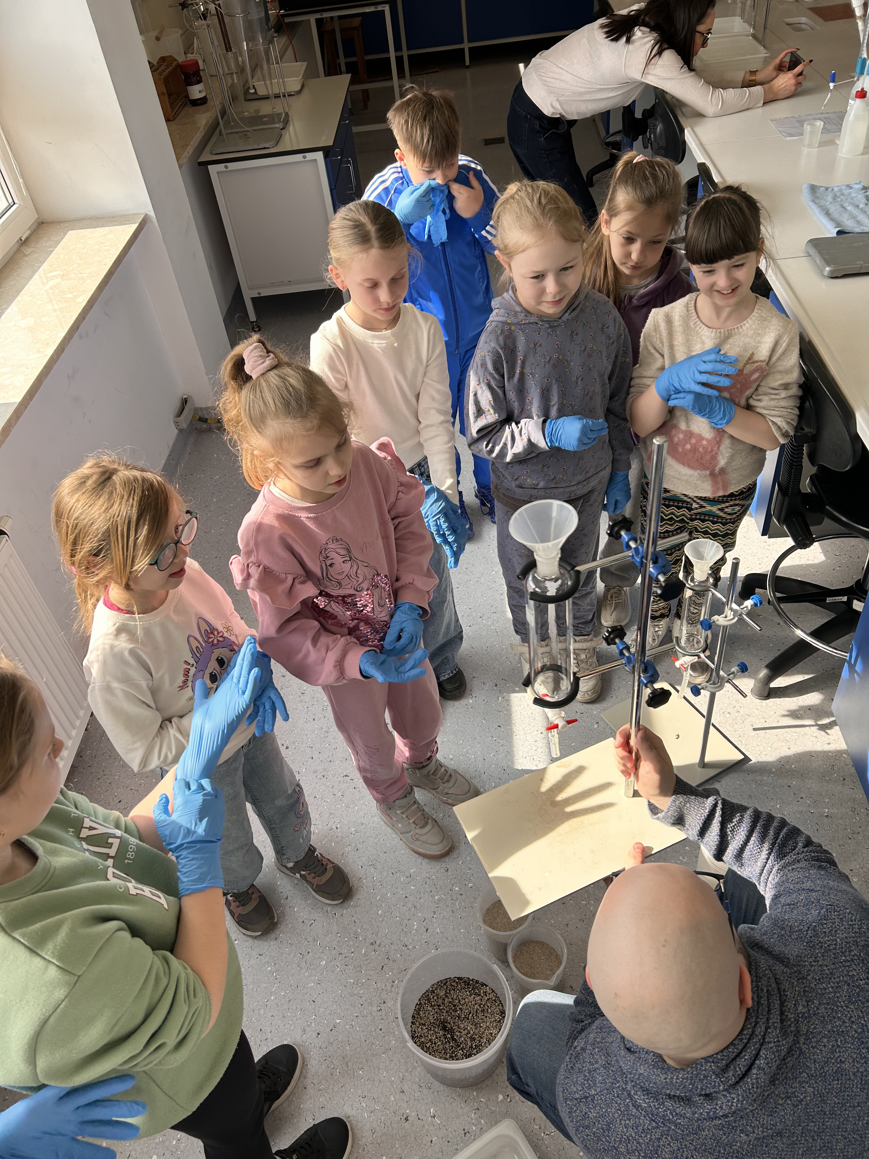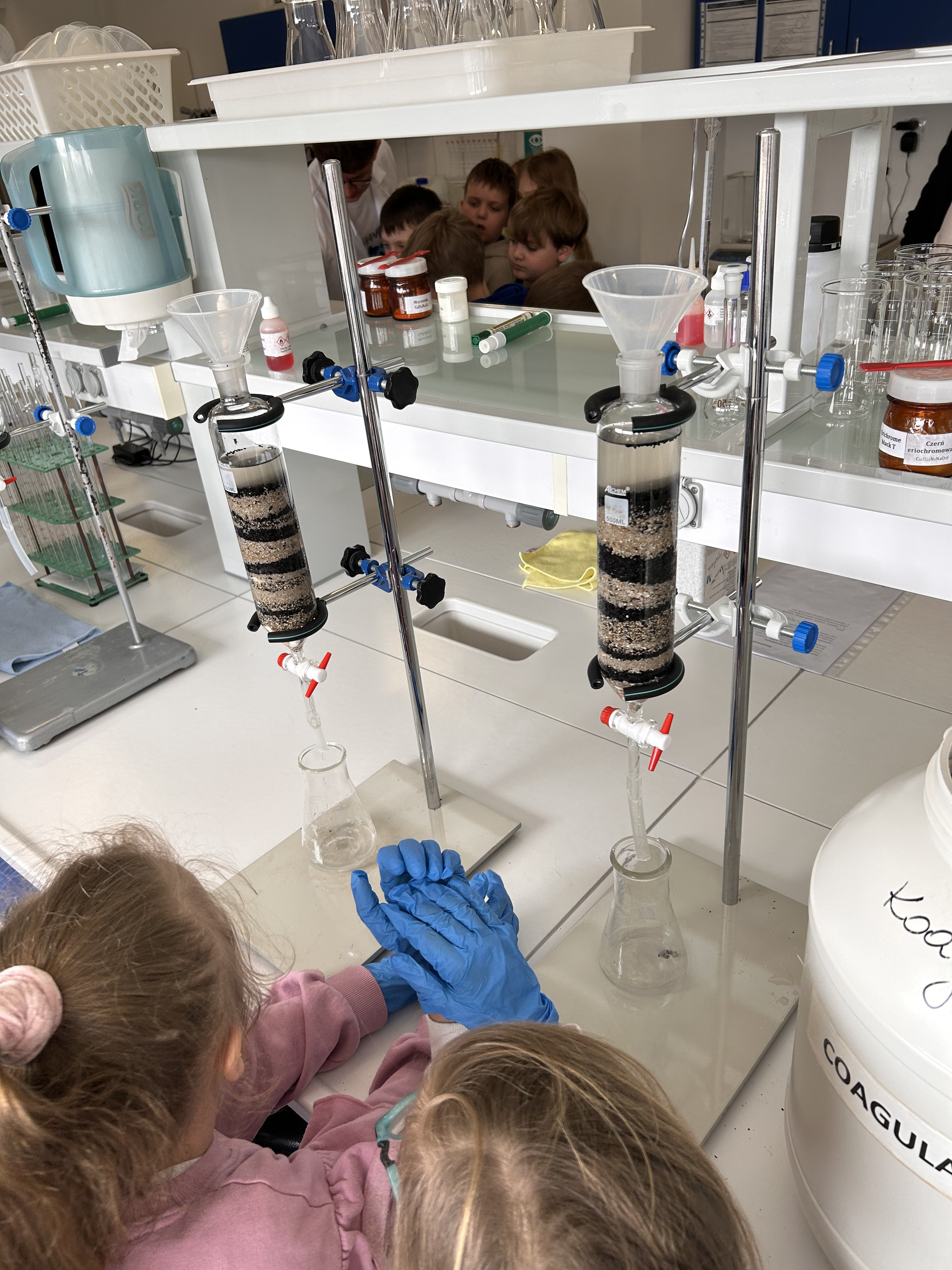 Pracownicy Katedry Technologii w Inżynierii Środowiska przygotowali dla dzieci angażujące zajęcia, podczas których wyjaśnili proces uzdatniania wody oraz odpowiedzieli na pytanie „Skąd bierze się woda w kranie?”. Uczestnicy mieli także okazję samodzielnie konstruować proste filtry w ramach wspólnych eksperymentów, a także przeprowadzić proces koagulacji i ocenić efektywność zastosowanych koagulantów w procesie oczyszczania wody.