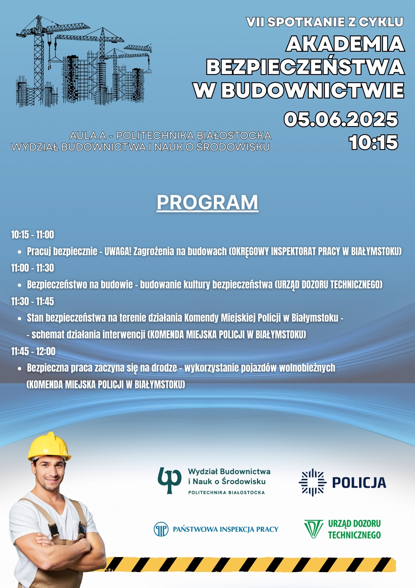 Serdecznie zapraszamy studentów oraz pracowników na wydarzenie poświęcone tematyce bezpieczeństwa w budownictwie, organizowane w ramach Akademii Bezpieczeństwa.